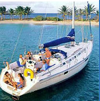 We arrive on the island and board the 5 cabin, 5 bath/shower 53'